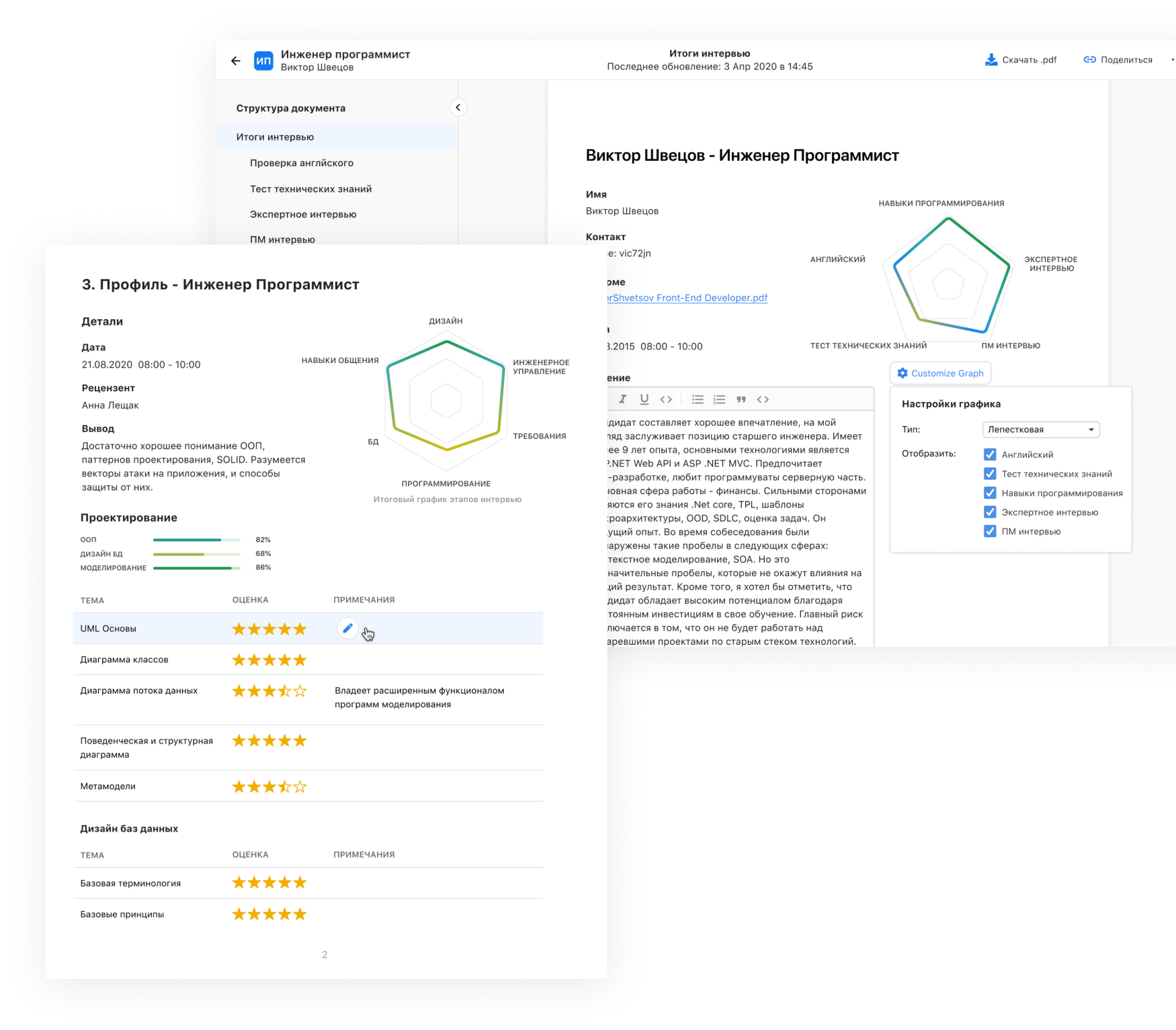 - Дописать логику формирования профиля интервью и доделать экспорт в PDF.